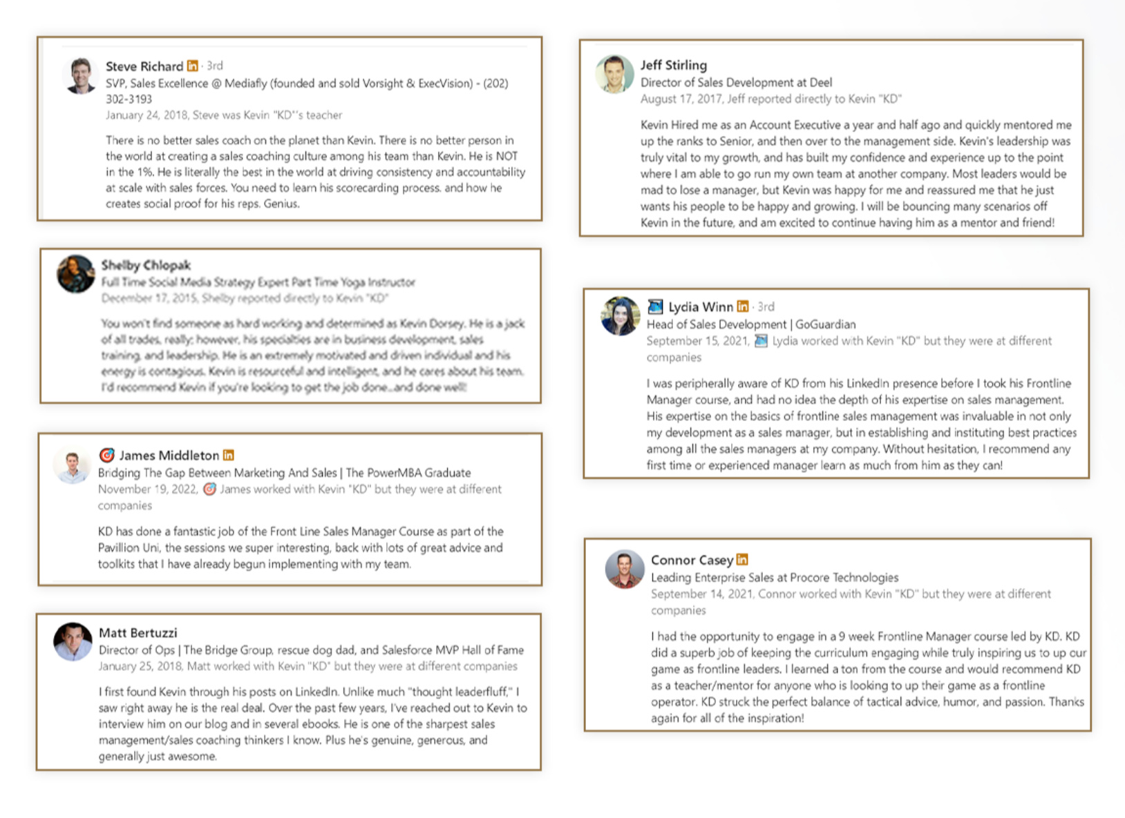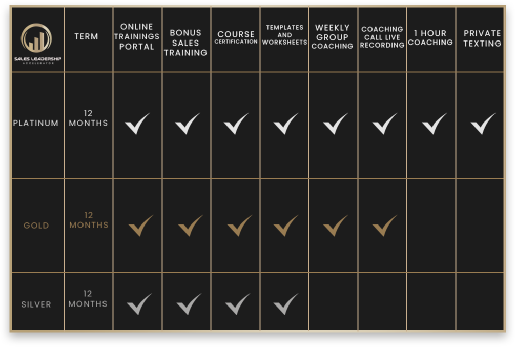 By signing up for the Sales Leadership Accelerator, you will also get access to all previously-recorded sales trainings and Master Classes from my content library, Patreon group, and more. Over 20 hours of training content to level-up your team!